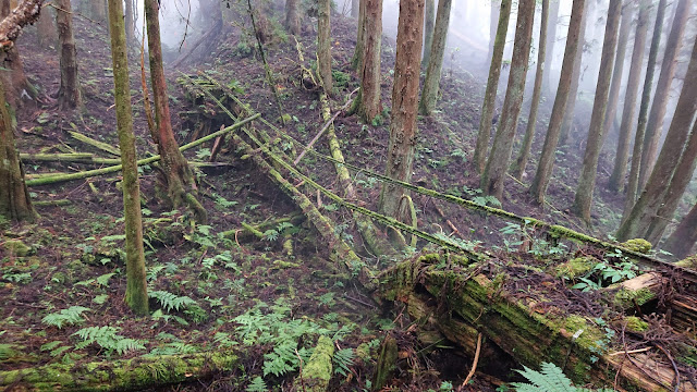 我跟飛容本想從塔塔加駐在所後方找到那條斜斜往上翻過陵線下去的登山道